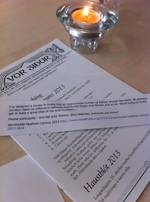 A wonderful take-home message from the census is that, when there is something positive for everyone to work towards, the often furious disagreements between various branches of the heathen community can be temporarily put aside. I was very glad to see posts by and receive emails from people who don't agree with my approach to mythology and heathenry, yet still took part in the census and urged their friends to do so, as well. I was very happy to see members of diametrically opposed heathen communities urge people to take part in the survey.